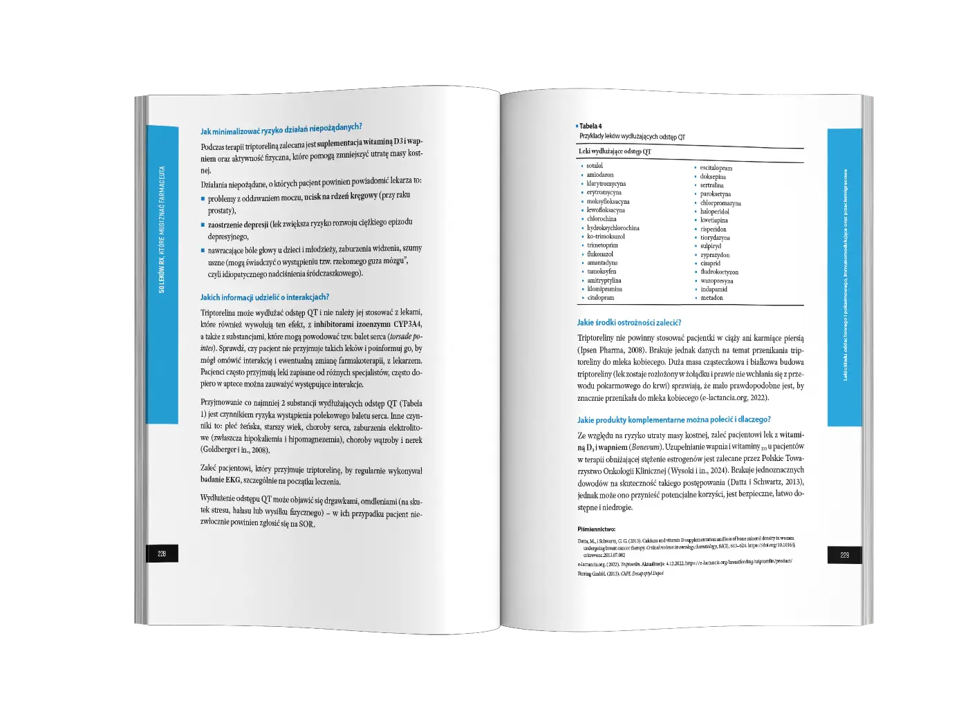 Podręcznik 50 leków Rx, które musi znać farmaceuta prezentuje substancje, z którymi farmaceuci mają do czynienia w codziennej praktyce. Wśród nich znajdują się zarówno leki powszechnie stosowane, wymagające dogłębnej wiedzy, jak i nowsze preparaty, rzadziej przepisywane, ale warte uwagi ze względu na mniejszą znajomość wśród czytelników. Publikacja systematyzuje informacje o standardowych zastosowaniach tych leków, nowych wskazaniach oraz stosowaniu off-label, dostarczając praktycznych wskazówek, które ułatwiają ich wykorzystanie w pracy.