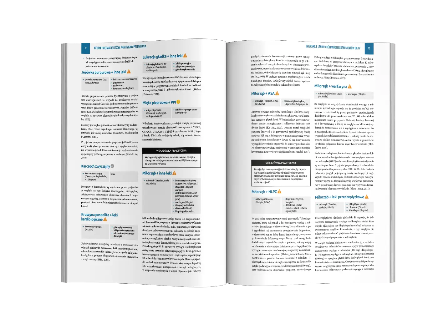 Struktura rozdziałów jest przejrzysta, dzięki czemu odnalezienie istotnych informacji na dany temat jest łatwe i intuicyjne, co pozwala na sprawdzenie interesujących nas informacji nawet przy pacjencie. Dla każdej interakcji omówiono następujące zagadnienia: