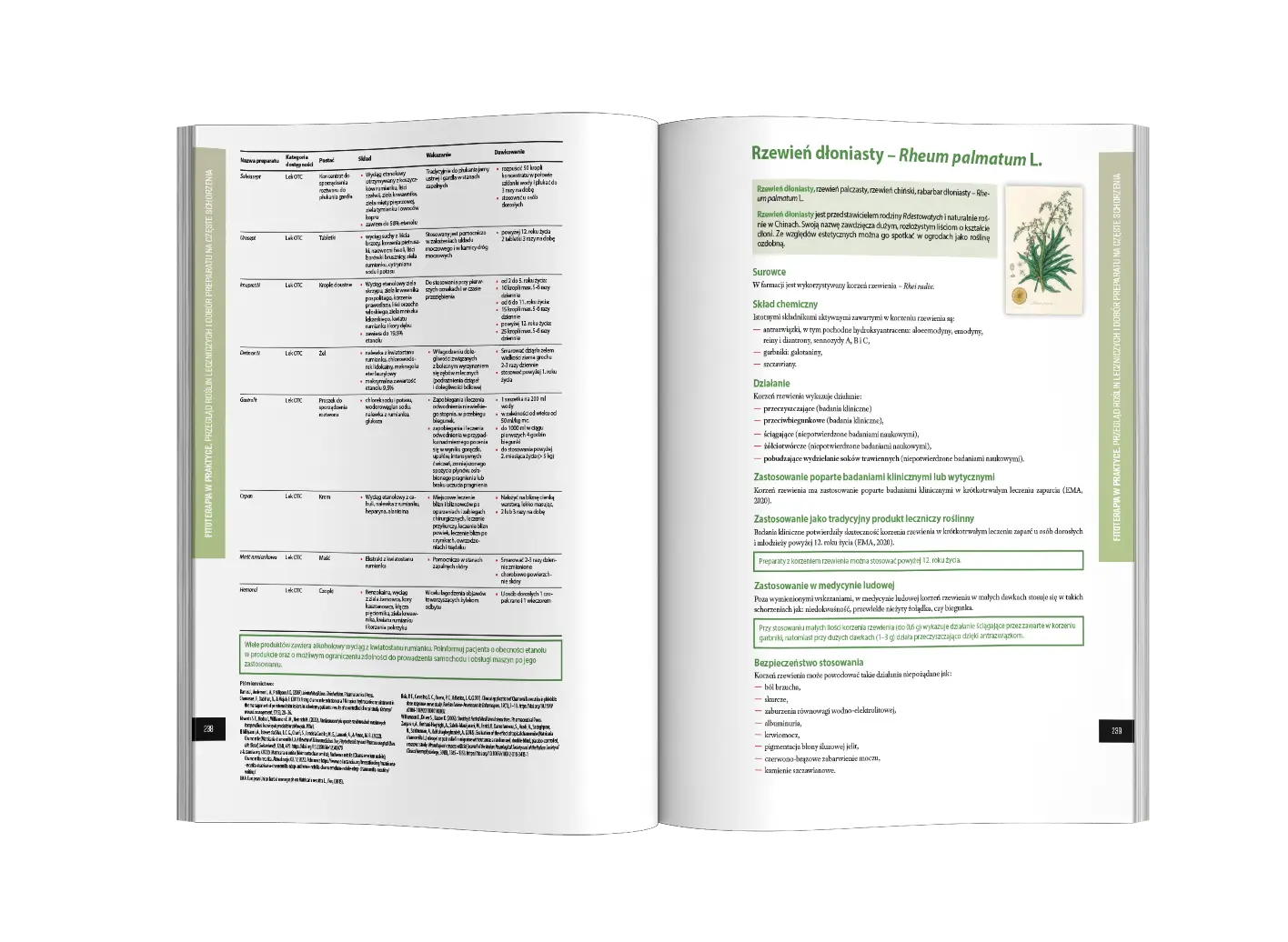 Każda roślina przedstawiona jest z ilustracją, nazwą łacińską, przykładowymi wskazaniami oraz przeglądem preparatów. Mocną stroną opracowania jest czytelna szata graficzna, przejrzysty układ rozdziałów oraz indeks preparatów i interakcji, które pozwalają farmaceutom błyskawicznie odnaleźć potrzebną informację podczas rozmowy z pacjentem. Podręcznik skupia się najczęściej stosowanych w Polsce lekach roślinnych uwzględniając dostępne dane naukowe i wyniki badań potwierdzające ich skuteczność.